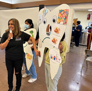 High school interns, and other volunteers work in partnership with the bi-lingual health educator and dietitian to implement and offer the program every week. The teen volunteers help and also learn to improve their own health and the health of their family.